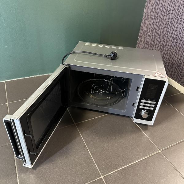 Deze magnetron is ideaal voor het snel opwarmen van maaltijden, het ontdooien van voedsel en het bereiden van eenvoudige gerechten. Hij is makkelijk te bedienen en past in elke keuken. De magnetron is in goede staat en klaar voor gebruik.